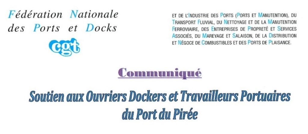 Kommuniqué des Nationalen Verbands der Häfen und Docks der CGT in Frankreich